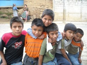 Niños del curso “Tacana” a la salida de clases en la Escuela Pájaro de Fuego en San Andrés de Itzapa, Guatemala.